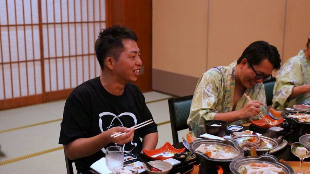 アクティビティが終わったら豪華なお食事をみんなで堪能!美味しいご飯を食べながら交流を楽しみました。