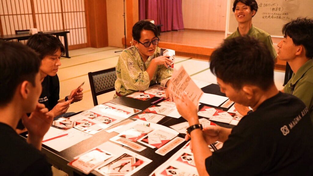 で取り入れているマーダーミステリーを体験いただきました。今回は経営者の皆様に体験いただきましたが、社員研修や社員旅行の一環として取り入れると、相手のこともより深く知れたり、絆が深まっていきます。