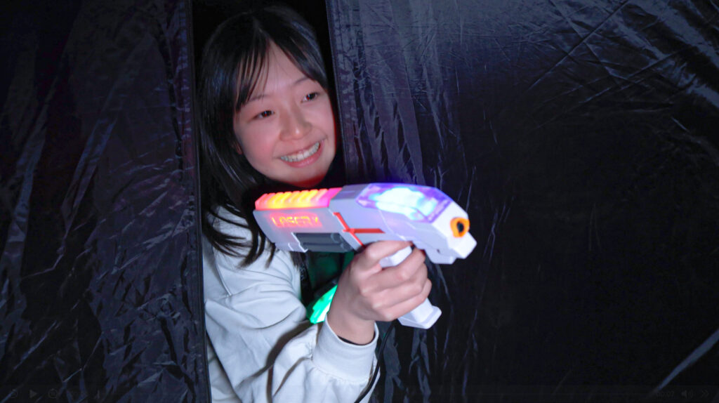 全力で走り回りシューティングゲームにチャレンジ!そのほかにも脱出ゲームなどのアクティビティを実施。仕事から離れ、家族との貴重な時間を満喫していただきました。